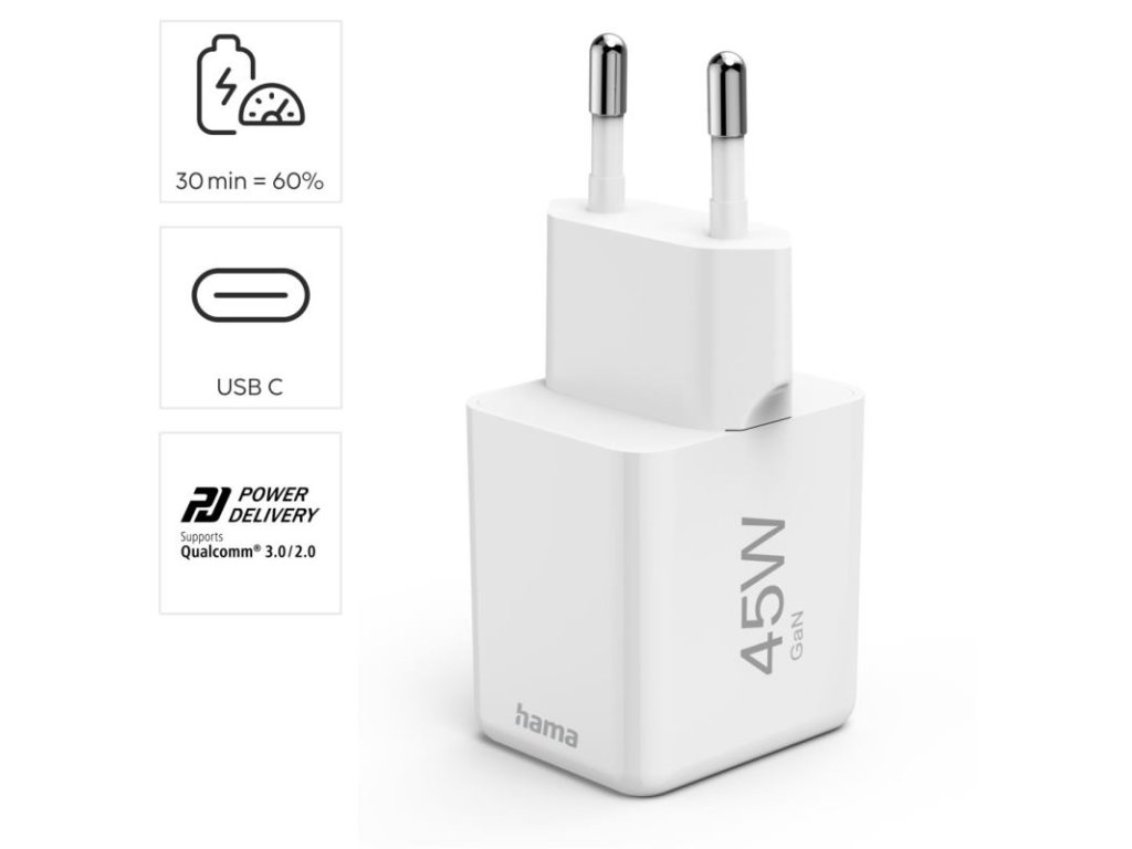 HAMA Super-mini, Rýchlonabíjačka, USB-C PD/QC 45W