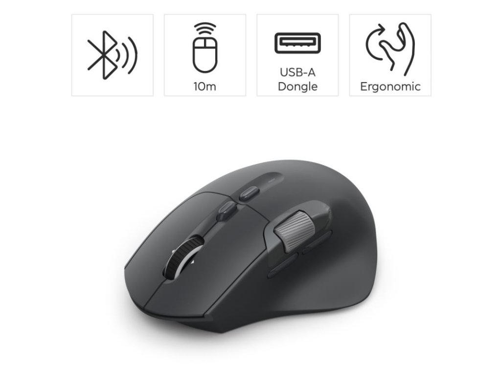 Táto myš predstavuje ideálne riešenie pre moderné pracovné prostredie, kde je potreba prepínania medzi rôznymi zariadeniami, tichá práca a vysoká funkcionalita v jednom elegantnom balení.