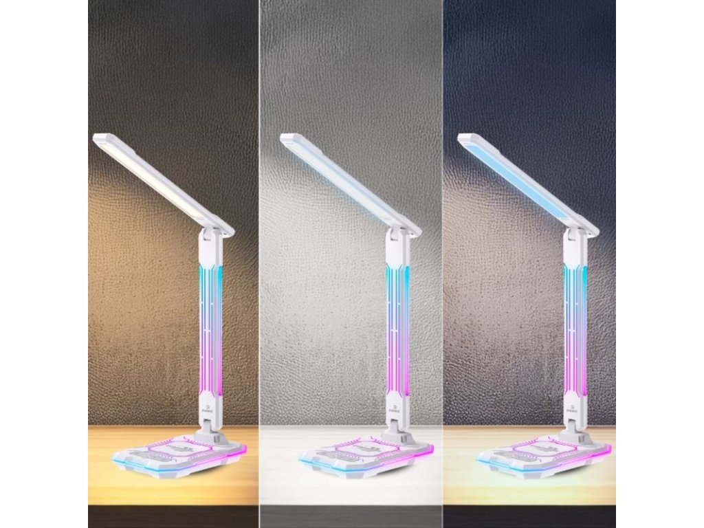 Lampička HW-LAMP04 je vybavená bezdrôtovou nabíjačkou s výkonom do 10W, ktorá umožňuje rýchle nabíjanie smartfónu alebo iných zariadení počas hrania. Pre optimalizáciu činnosti sa výkon nabíjania automaticky znižuje na 5W, keď je hlavné svetlo zapnuté. Je to ideálne riešenie pre hráčov, ktorí chcú zachovať poriadok na svojom stole, eliminujúc potrebu používania káblov.