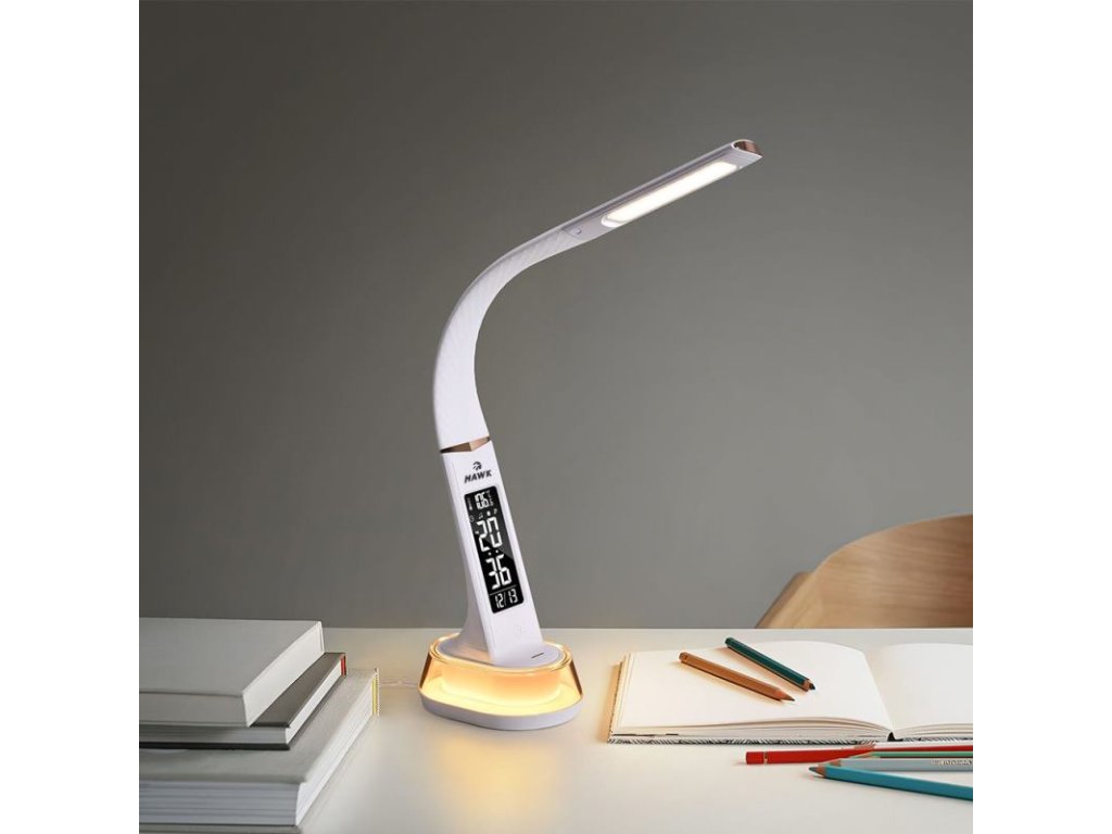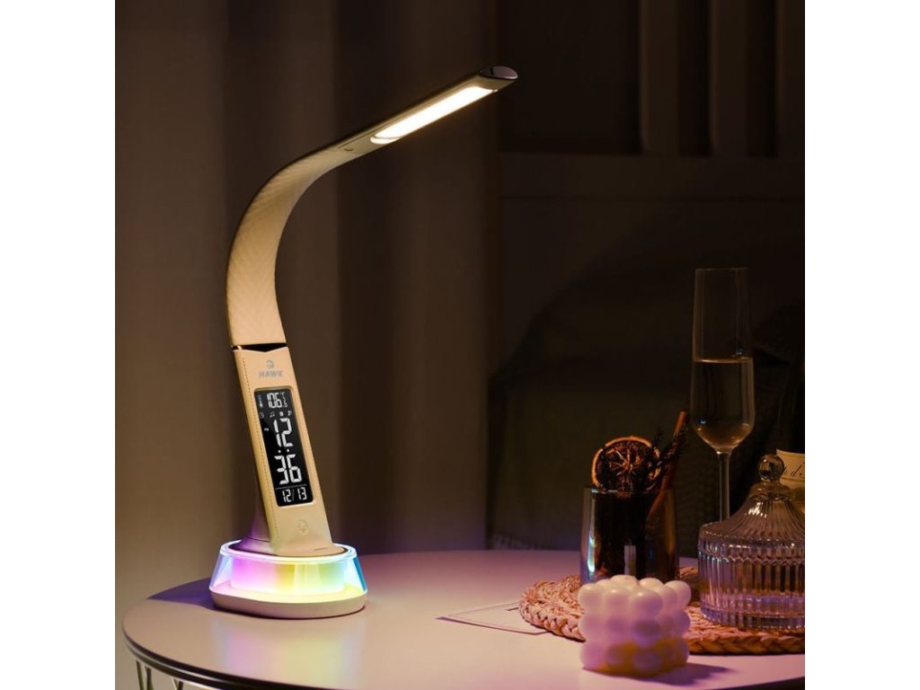 HAWK HW-LAMP05 je multifunkčná LED lampička, ktorá spája moderný dizajn s praktickými riešeniami. Vďaka trom druhom farebnej teploty, dotykovej regulácii jasu a vstavanému RGB svetlu v základni sa dokonale hodí tak do spálne, ako aj na písací stôl. Navyše, displej s funkciou budíka a ukazovateľmi dátumu a teploty ju robí ideálnou voľbou pre ľudí, ktorí si cenia funkčnosť a estetiku.