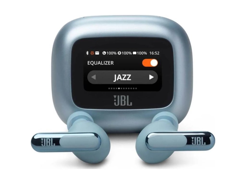 Pohodlné ovládanie so Smart Charging Case: Revolučné nabíjacie puzdro s dotykovým displejom vám umožňuje prispôsobiť všetky funkcie slúchadiel - hlasitosť, ekvalizér, ovládanie hudby, prijímanie hovorov, zobrazovanie správ a dokonca aj prispôsobenie šetriča displeja vlastnými fotografiami - priamo z puzdra, bez otvárania aplikácie JBL.