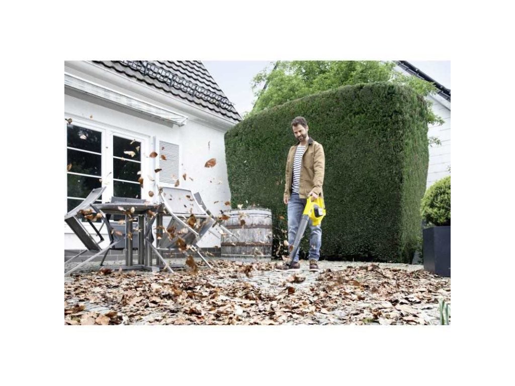 Súprava fukáru na lístie s 18 V batériou podáva pri akejkoľvek práci s lístím maximálny výkon. Fukár dosahuje rýchlosť vzduchu maximálne 210 km/h a pritom vďaka vynikajúcemu vyváženiu ergonomicky sedí v ruke. Na uvoľnenie a cielený pohyb lístia disponuje fukár na lístie odnímateľnou plochou hubicou so škrabkou. V štandardnej výbave sa nachádza 18 V vymeniteľná batéria Kärcher ako aj nabíjačka.