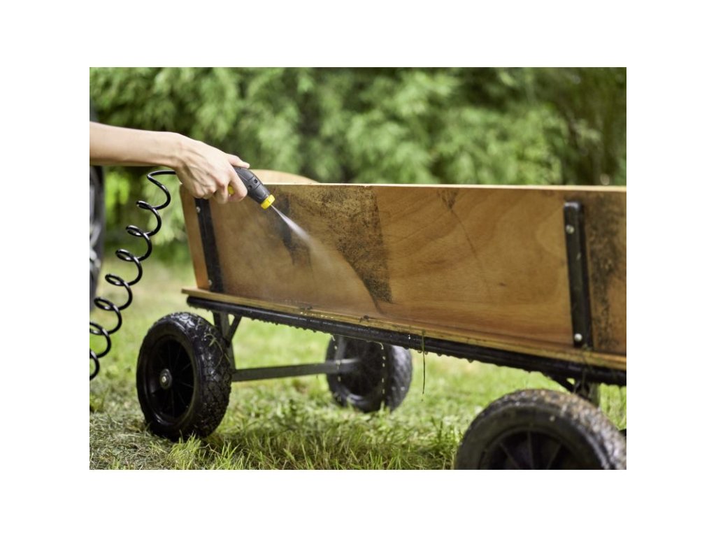 Nízky tlak ponúka tú výhodu, že čistenie je efektívne a zároveň mimoriadne jemné. Štandardná tryska s plochým striekaním umožňuje viditeľný čistiaci výkon. Kužeľová rozprašovacia tryska je ideálna pre citlivejšie čistenie.