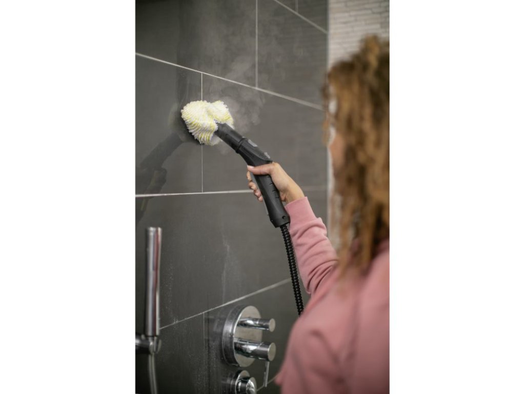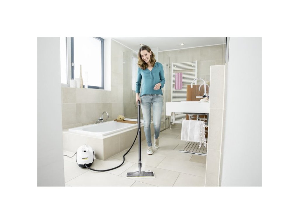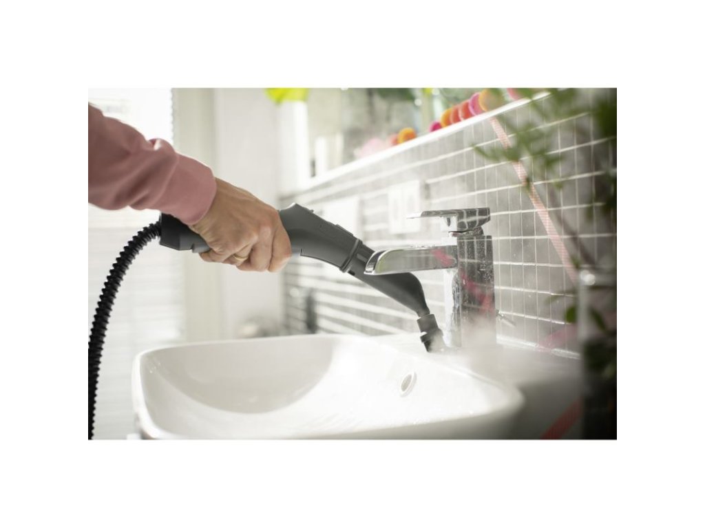 Dôkladné čistenie parným čističom Kärcher odstráni 99,999 % vírusov a 99,99 % všetkých bežných domácich baktérií z typických domácich tvrdých povrchov. Jeho rozsiahle príslušenstvo poskytuje hygienické výsledky pri čistení dlaždíc, varných dosiek, digestorov a dokonca aj tých najmenších štrbín - odstraňuje aj odolné nečistoty. Dodáva sa tiež s podlahovou hubicou EasyFix s flexibilným kĺbom pre vynikajúcu ergonómiu a lamelovou technológiou pre dokonalé výsledky čistenia.