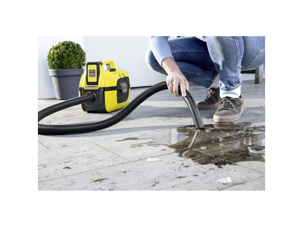 Chcete plnú funkčnosť mokro suchého vysávača bez toho, aby ste sa museli spoliehať na sieťové napájanie? Žiadny problém pre základný mokrý a suchý vysávač WD 1 Compact Battery Set s kompaktným prenosným dizajnom. Batéria, ktorá je súčasťou súpravy, poskytuje dobu prevádzky 10 minút a využíva technológiu v reálnom čase na neustále zobrazovanie stavu batérie na integrovanom LCD displeji. Robustná, nárazuvzdorná plastová nádoba so sedemlitrovým objemom. Vďaka patrónovému filtru ľahko povysávate suché a mokré nečistoty bez nutnosti výmeny filtra.
