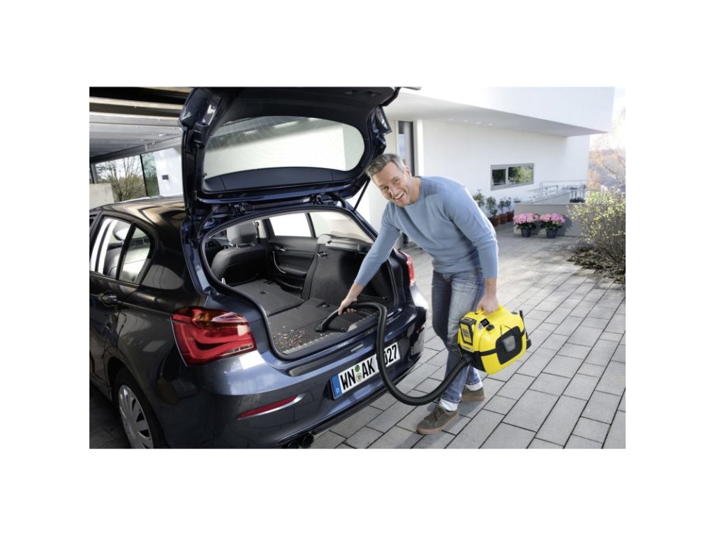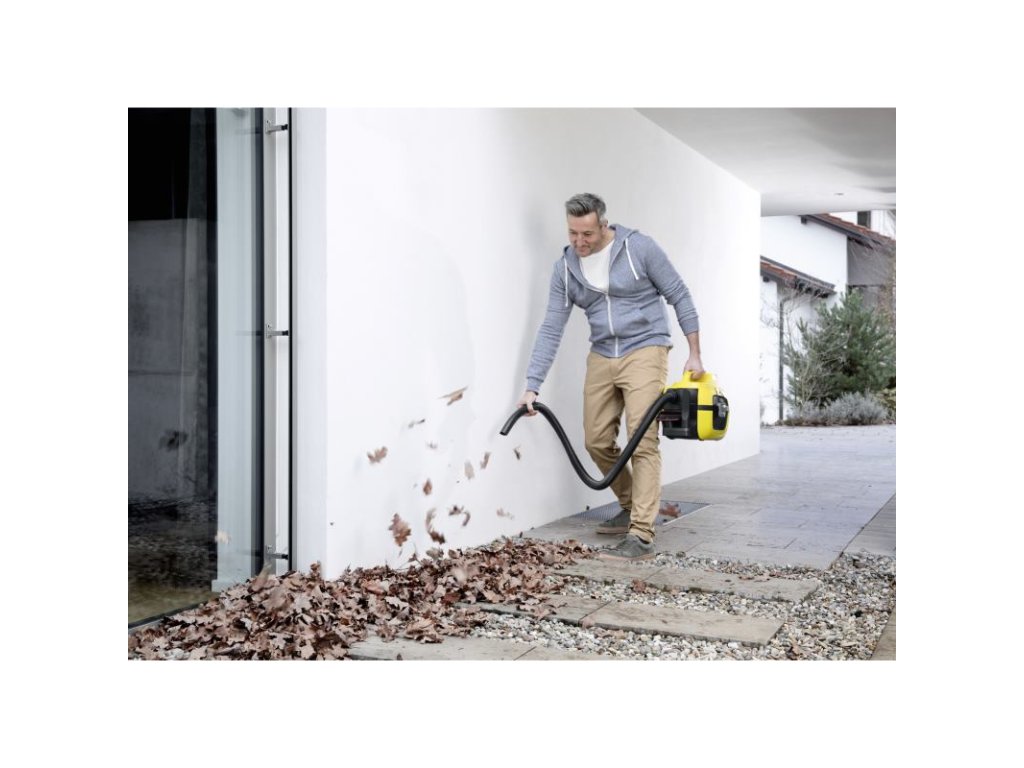 Sacia hadica s optimalizovaným prietokom a špeciálne príslušenstvo na čistenie interiérov automobilov, ako je štrbinová hubica a hubica na čalúnenie, sa postarajú o úplné odstránenie nečistôt. Príslušenstvo sa dá pohodlne upratať, keď si urobíte prestávku v práci alebo na uskladnenie. Ďalšie prvky výbavy: funkcia fúkania, uzamykací systém "Pull & Push", ergonomická rukoväť na prenášanie a praktický úložný priestor na príslušenstvo a hadicu s gumičkou. Vďaka kompatibilite s akumulátorovou platformou 18 V Kärcher Battery Power je možné akumulátor použiť aj v iných zariadeniach na tejto platforme.