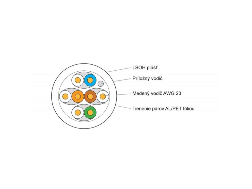 - kábel po pároch tienený s AL/PET fóliou a LSOH plášťom