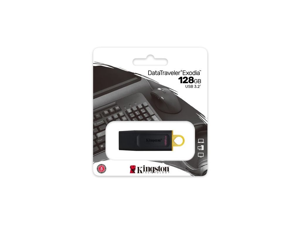 Kingston DataTraveler® Exodia ponúka výkon USB 3.2 Gen1 pre ľahký prístup k notebookom, stolovým počítačom, monitorom a ďalším digitálnym zariadeniam. DT Exodia umožňuje rýchle prenosy a pohodlné ukladanie dokumentov, hudby, videa a ďalšieho obsahu. Jeho praktický dizajn a módne farby ho predurčujú na každodenné použitie v práci, doma, v škole alebo kdekoľvek, kam potrebujete vziať svoje údaje. DT Exodia je k dispozícii s kapacitou až 128GB1 poskytuje sa na kľúč päťročná záruka, bezplatná technická podpora a legendárna spoľahlivosť spoločnosti Kingston.®.