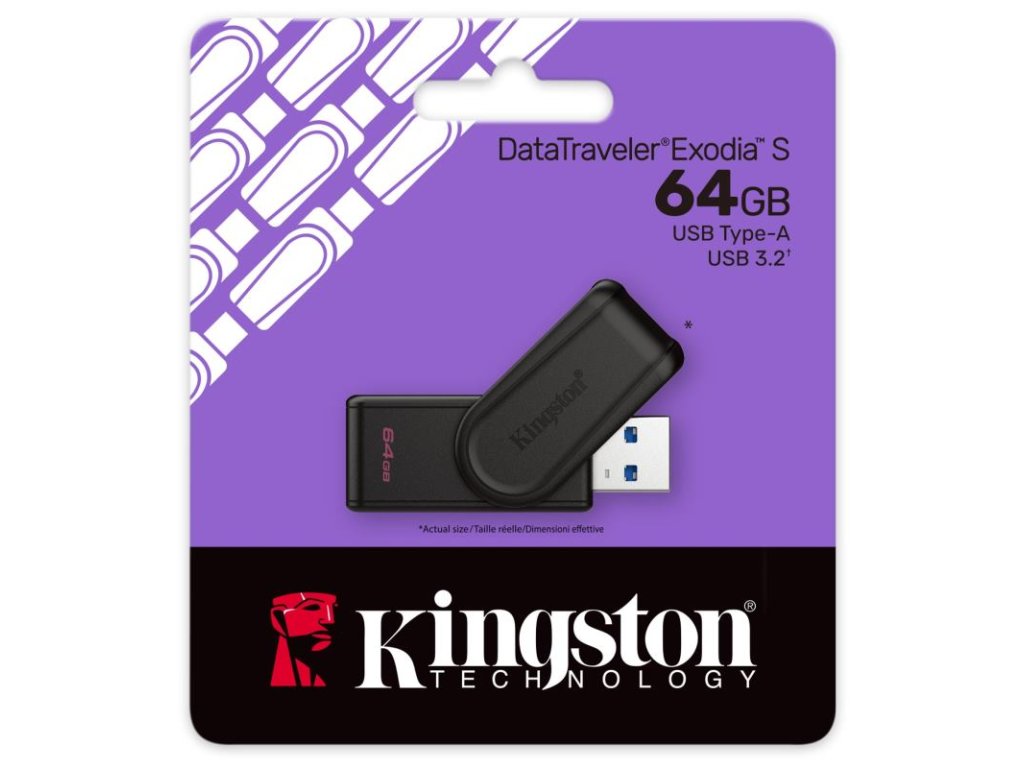 USB kľúč DataTraveler Exodia S značky Kingston predstavuje USB 3.2 Gen1 kompatibilné riešenie ukladania dát pre notebooky, stolné počítače a ďalšie digitálne zariadenia. USB kľúč DT Exodia S umožňuje ľahké prenosy a praktické ukladanie dokumentov, videí, hudby a ďalšieho. USB kľúč DT Exodia S s kapacitou až do 512 GB má otočný kryt a je dostupný v rôznych farbách. Vďaka svojmu prevedeniu predstavuje šikovné riešenie prenosného úložiska do práce, do školy alebo domov. USB kľúč DT Exodia S sa opiera o povestnú spoľahlivosť produktov Kingston a navyše ponúka päťročnú záruku aj bezplatnú technickú podporu.