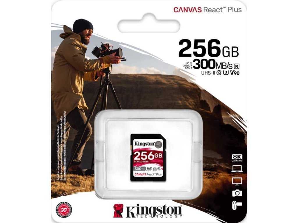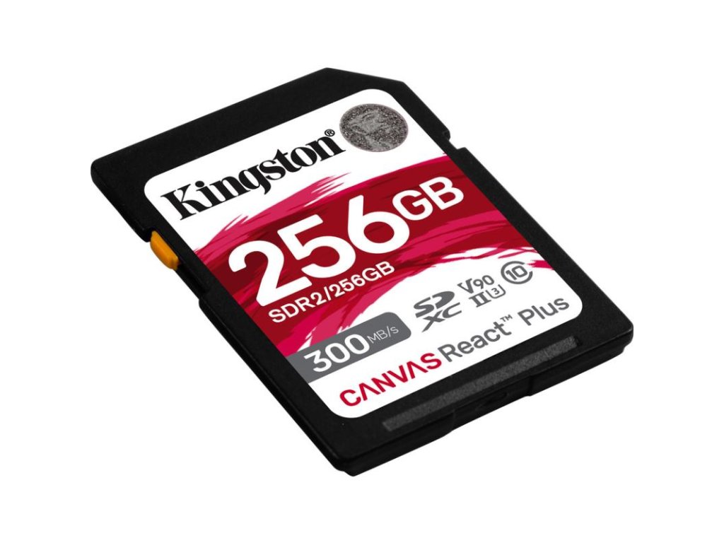 Pre profesionálne kino kamery 4K / 8K. Karta Kingston Canvas React Plus SD poskytuje vysokovýkonné rýchlosti, ktoré sú navrhnuté tak, aby pracovali s profesionálnymi fotoaparátmi štandardného odvetvia pre kreatívu, ktoré snímajú videá s rozlíšením 4K / 8K a fotografie s vysokým rozlíšením. Canvas React Plus SD, navrhnutý podľa najnovších štandardov UHS-II a špičkových tried rýchlosti U3 a V90, umožňuje snímať sekvenčné zábery v sekvenčnom režime s rýchlosťou záznamu až 260 MB/s.