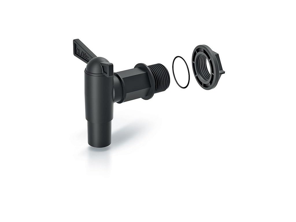 Otočením kohútika vypustíte nazhromaždenú dažďovú vodu v nádrži.Sada sa skladá z 3 prvkov: kohútik, tesnenie, matice.
