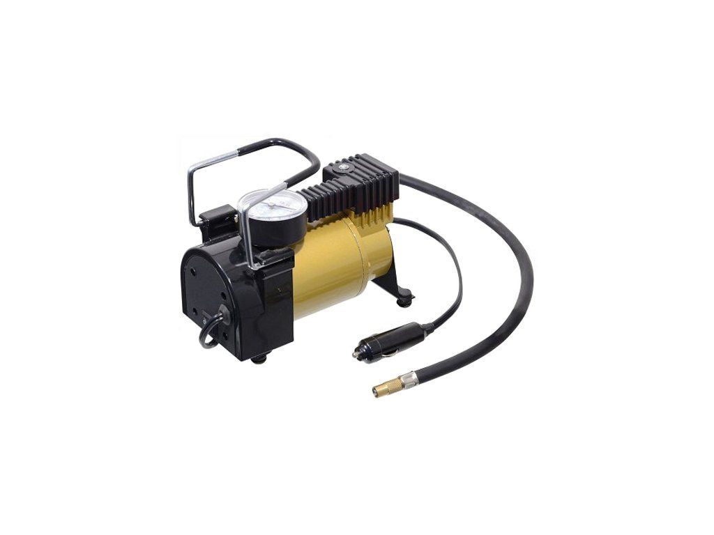 Vzduchový kompresor s měřičem tlaku, napájení 12V DC. Napájecí kabel se zástrčkou do zásuvky automobilového zapalovače 12V.Kompresor je vhodný k huštění pneumatik osobních automobilů, dodávek i vozů 4x4. Kompresor vyvine max. tlak 9 kg/cm² (BAR). Součástí balení je praktická uzavíratelná brašna a přídavné adaptéry pro různé použití (huštění míčů, matrací a pod.).