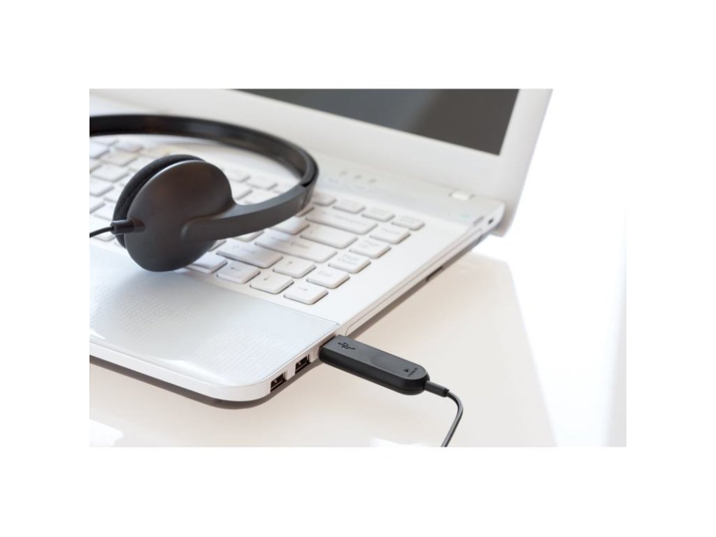Headset vyniká mimoriadne širokou kompatibilitou. Jeho 1,8 metra dlhý kábel je zakončený USB konektorom. Môžete ho pripojiť k počítaču, notebooku a veľkému množstvu ďalších zariadení, u ktorých chcete počuť zvuk alebo sa dorozumievať s ostatnými na diaľku.