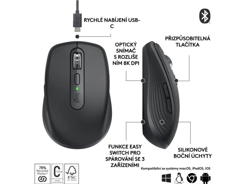 LOGITECH MX Anywhere 3S, Bezdrôtová myš, Graphite