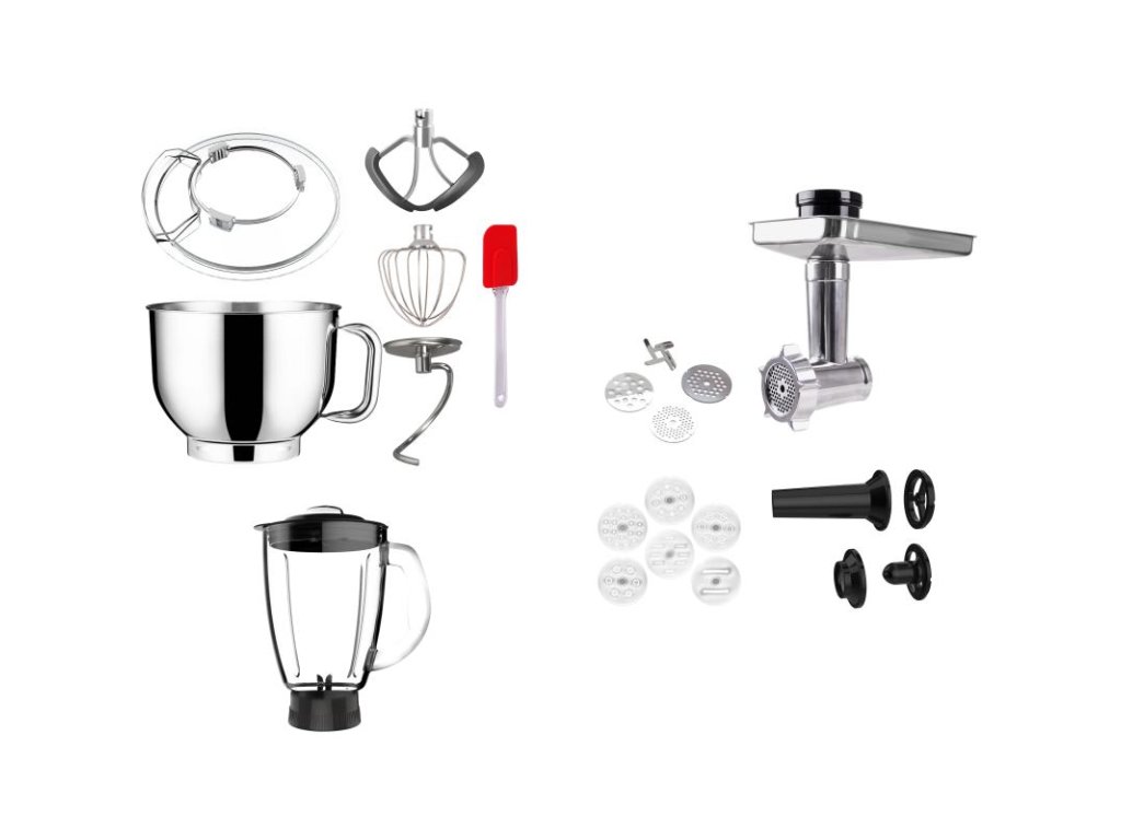 Mlynček na mäso, dodávaný s planetárnym mixérom, ponúka všestrannosť v kuchynských úlohách. Vďaka nemu môžete ľahko mlieť rôzne druhy mäsa na domáce klobásy, hamburgery či mleté jedlá, čím pridáva ešte väčšiu funkcionalitu už aj tak všestrannému zariadeniu. Pevná konštrukcia a jednoduchá montáž robia používanie mlynčeka jednoduchým a pohodlným.