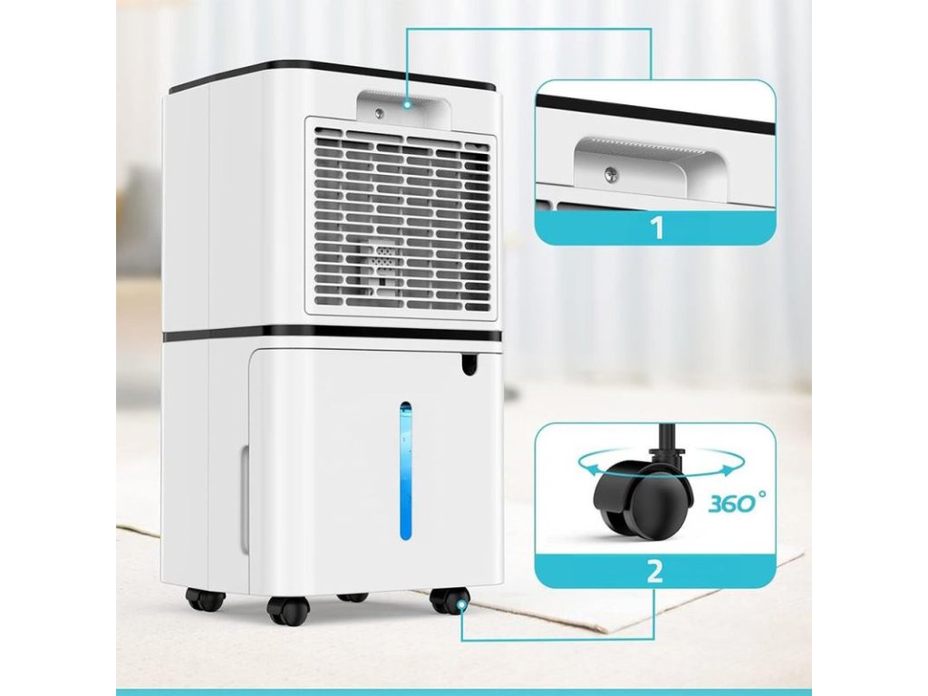 Umožňujú vám jednoducho pohybovať zariadením akýmkoľvek smerom, čím zaisťujú pohodlie a flexibilitu pri používaní. Rukoväť uľahčuje prenášanie a manévrovanie s odvlhčovačom, vďaka čomu je funkčnejší a mobilnejší.