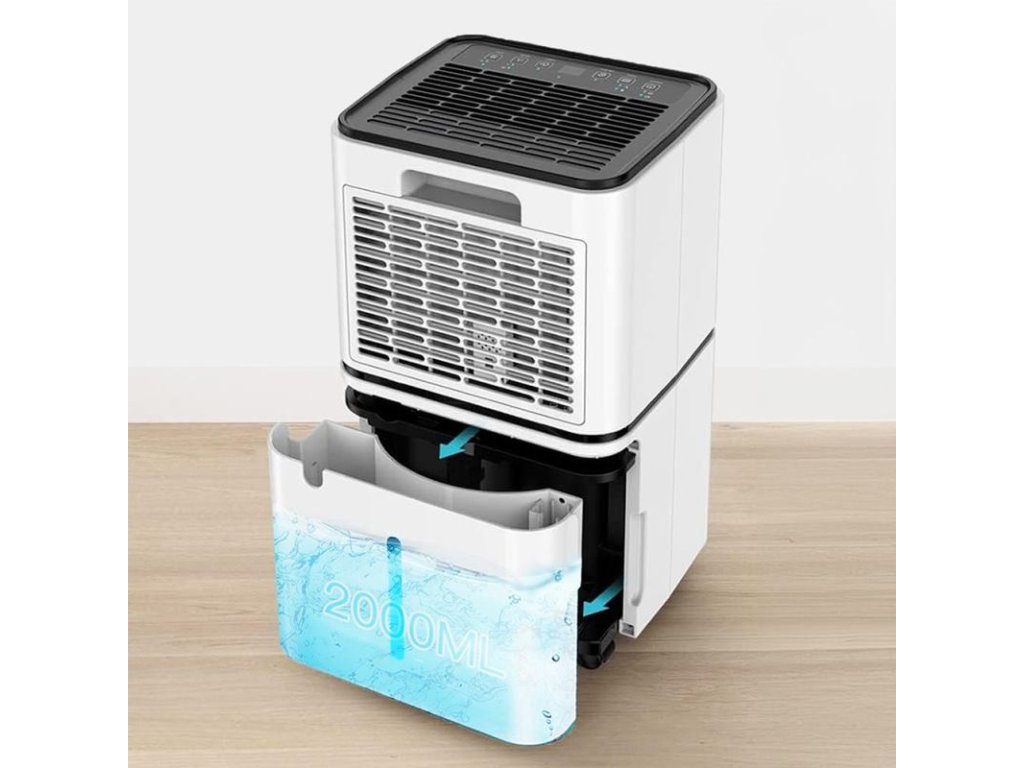 2-litrová nádrž zaisťuje pohodlné skladovanie vody, čím sa minimalizuje frekvencia jej vyprázdňovania pri každodennom používaní odvlhčovača.