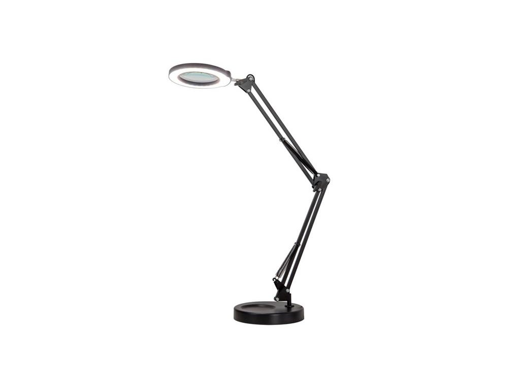 LED stmievateľná stolná lampička Immax ZOOM so zväčšovacou sklenenou šošovkou v čiernej farbe, funkčný pomocník do kozmetických salónov, dielní, kancelárií.Lampu je možné postaviť na plochu alebo pevne upevniť kovovou svorkou na okraj stola