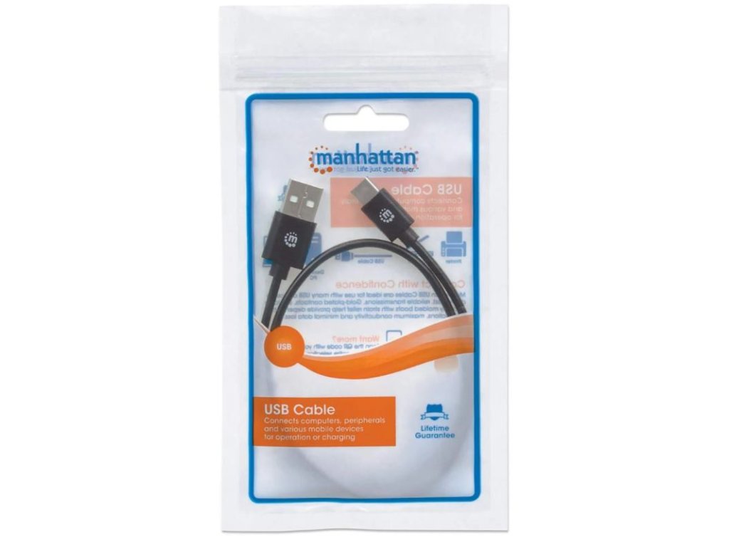 MANHATTAN Kábel, USB-A/USB-C, 0,5m, čierny