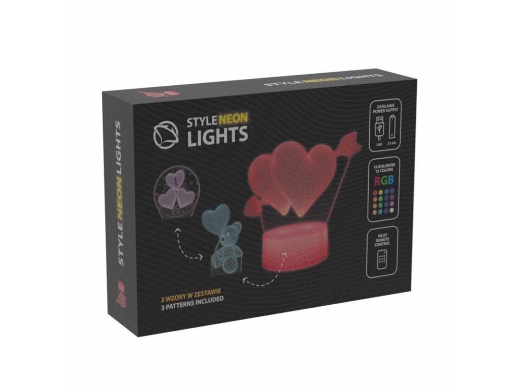 MANTA Style Neon Lights set troch 3D RGB sŕdc predstavuje jedinečnú svetelnú dekoráciu, ktorá kombinuje moderné LED technológie s romantickým dizajnom. Každé zo sŕdc je umiestnené na štýlovom bielom podstavci, ktorý dodáva celej zostave elegantný a sofistikovaný vzhľad. Vďaka RGB LED technológii môžu srdcia meniť farby a vytvárať tak rôzne svetelné atmosféry.