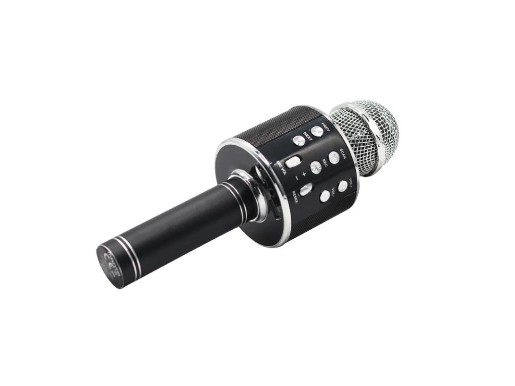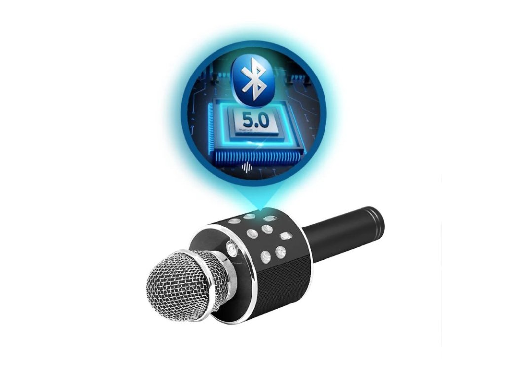 Na multifunkčnom mikrofóne so vstavaným 5 W RMS reproduktorom môžete počúvať svoju obľúbenú hudbu pripojením USB kľúča, vložením micro SD karty, priamo cez pomocný kábel AUX alebo pripojením k smartfónu či tabletu cez bezdrôtové Bluetooth.