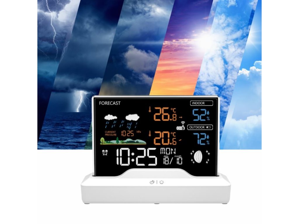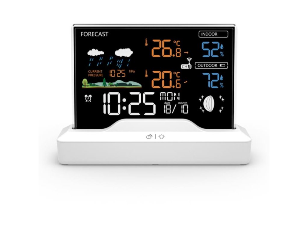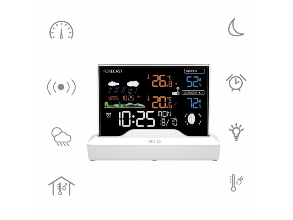 Zariadenie monitoruje nielen vonkajšie podmienky, ale aj klímu vo vašej domácnosti. Sleduje teplotu, vlhkosť a atmosférický tlak, čo vám pomáha lepšie rozumieť vášmu okoliu a predvídať zmeny počasia.