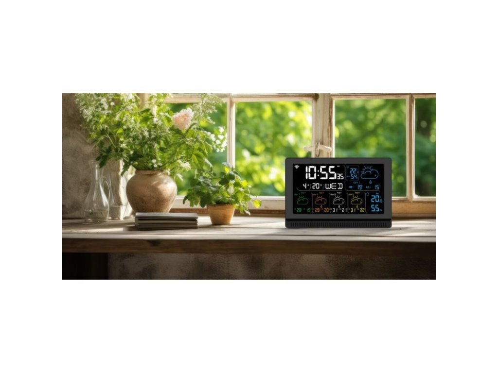 Zariadenie monitoruje nielen vonkajšie podmienky, ale aj klímu vo vašej domácnosti. Sleduje teplotu, vlhkosť a atmosférický tlak, čo vám pomáha lepšie rozumieť vášmu okoliu a predvídať zmeny počasia.