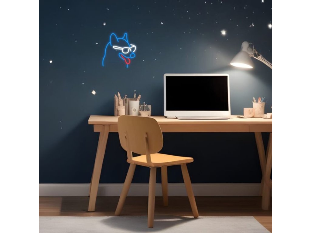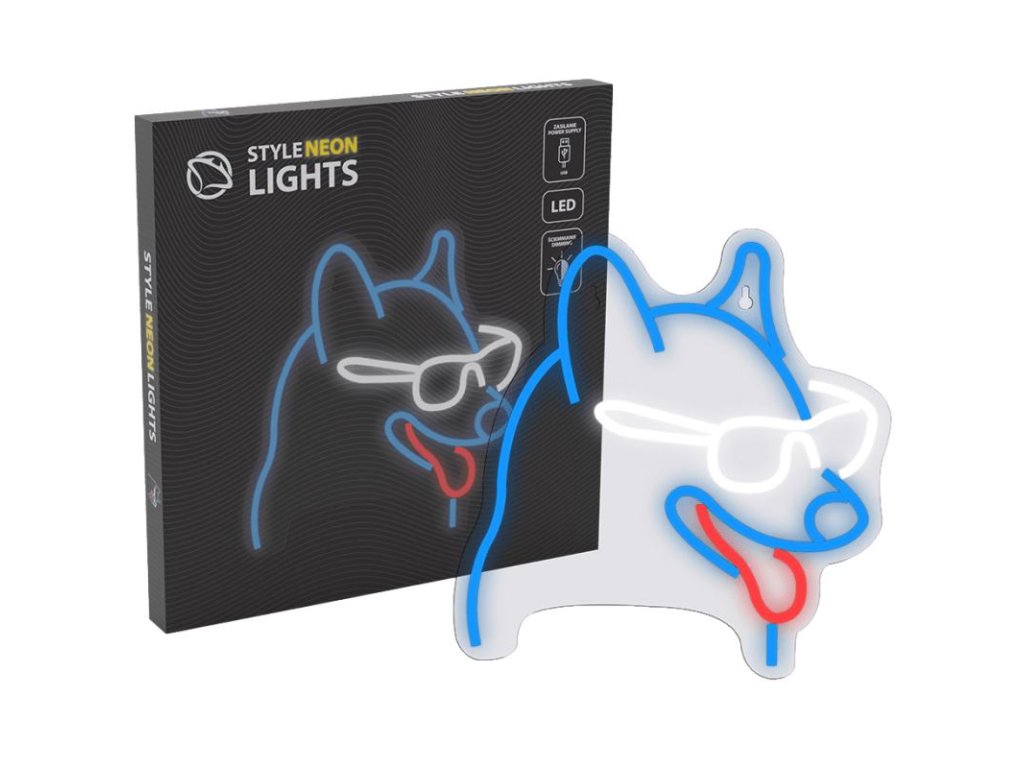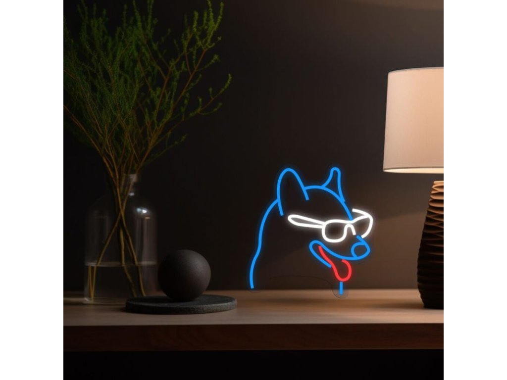 MANTA Pes v okuliaroch, LED Neon plexi dekorácia