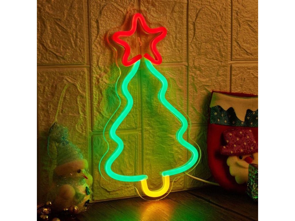 - Štýlová LED neónová dekorácia v tvare vianočného stromčeka