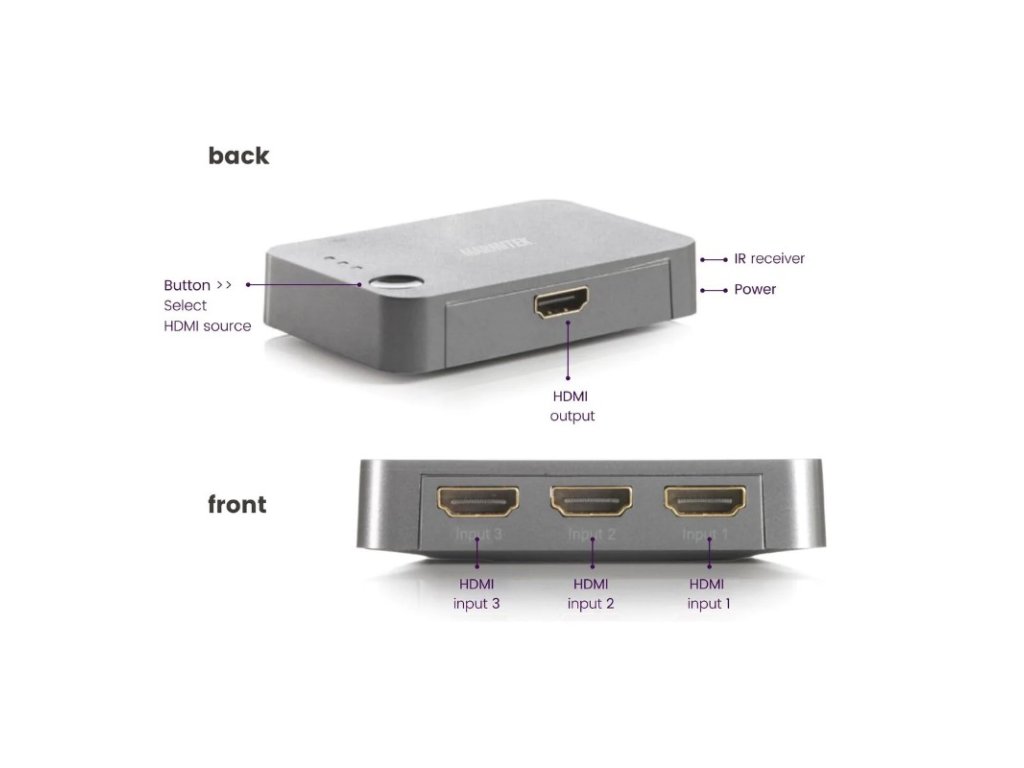 Pripojte 3 zariadenia, ako sú herné konzoly (PlayStation, Xbox), Blu-ray prehrávače, digitálne TV dekodéry a všetky ostatné HDMI zariadenia, pomocou jediného kábla k HDMI vstupu vášho televízora alebo projektora.