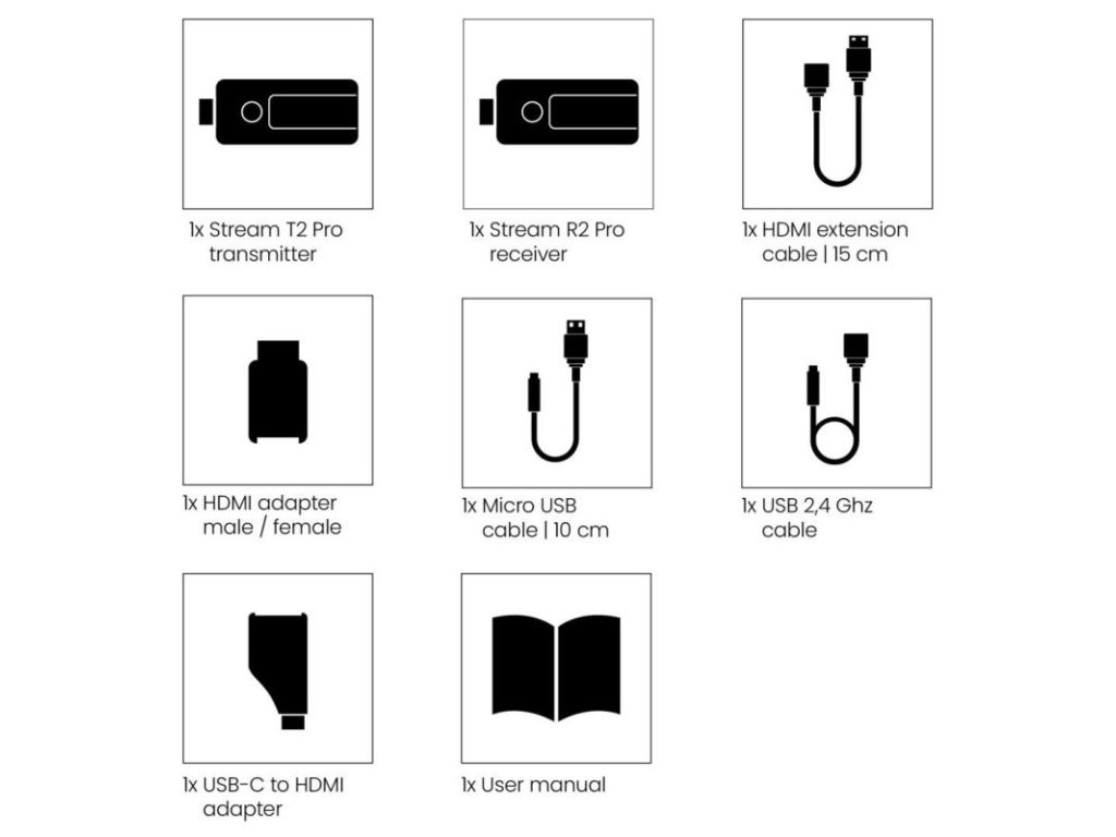 Stream S2 Pro je v podstate "bezdrôtový HDMI kábel". Tento prezentačný systém je ideálnym riešením, ak chcete bezdrôtovo pripojiť notebook k obrazovke. K jednému prijímaču Stream S2 Pro môžete pripojiť až 20 notebookov naraz. Na pripojenie každého ďalšieho notebooku potrebujete samostatne predávaný vysielač Stream T2 Pro. S týmito ďalšími vysielačmi je prepínanie medzi jednotlivými prezentujúcimi otázkou jediného stlačenia tlačidla.
