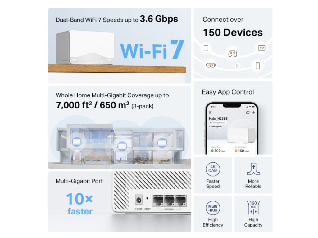 Najnovšia Wi-Fi 7 technológia: Vybavená 4K-QAM, MLO, Multi-RUs a ďalšími funkciami, ktoré Wi-Fi 7 ponúka. Vaša sieť bude pracovať s ohromujúcim výkonom.