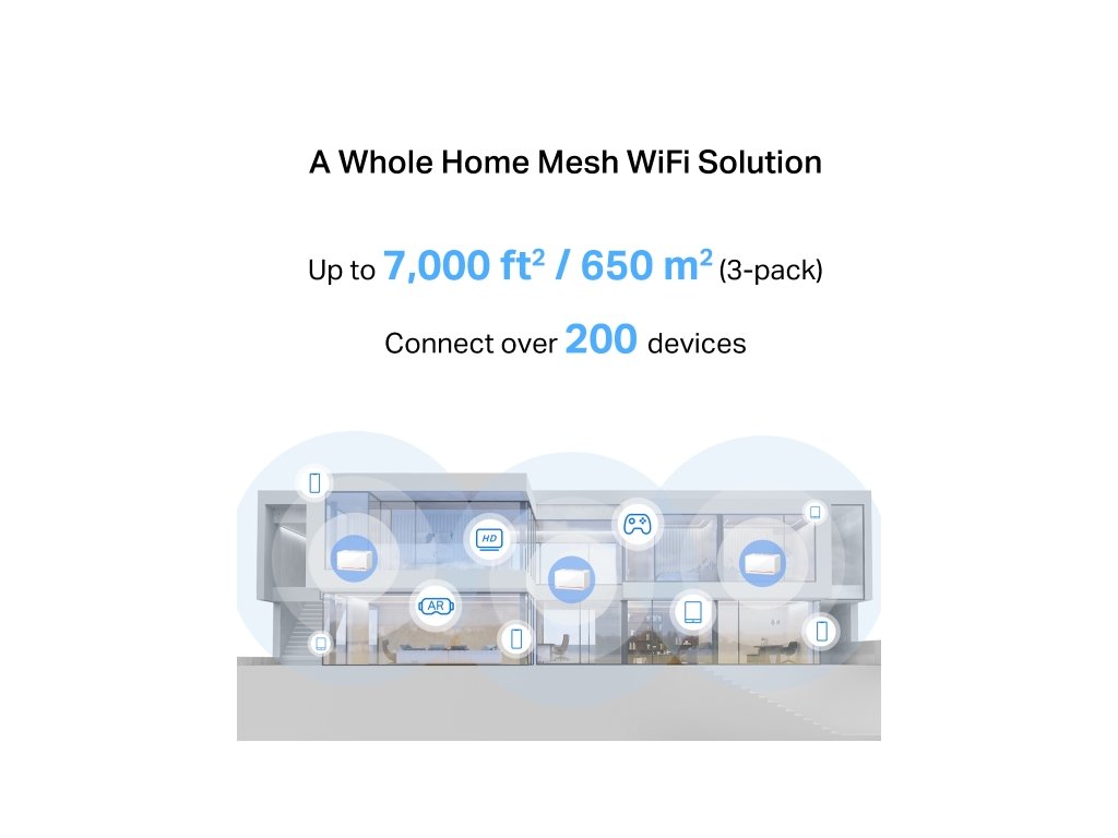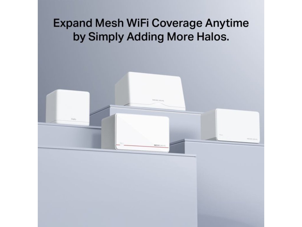 Celokryté pokrytie: Systém Halo sa spojuje do jednotnej siete, ktorá pokrýva plochu až 5,000 ft2 (460 m2) pre 2-pack a 7,000 ft2 (650 m2) pre 3-pack.