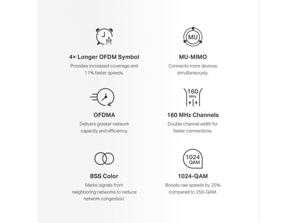 Dual Band WiFi 6 rýchlosť až 3000 Mbps - 2402 Mbps na 5 GHz a 574 Mbps na 2,4 GHz.