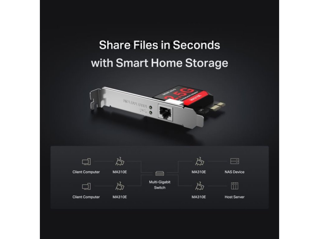 Zdieľanie súborov v sekundách - MA310E plne využíva váš 2.5 Gbps internetový prístup a dokáže sa bezproblémovo pripojiť k NAS zariadeniam pre vysokorýchlostný lokálny prenos dát.