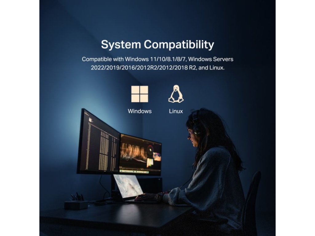 Podporované operačné systémy zahŕňajú Windows 11/10/8.1/8/7, Windows Servers 2022/2019/2016/2012R2/2012/2018 R2 a Linux. Pre Windows 11/10 nie je potrebný ovládač. Ovládače pre ostatné systémy sú dostupné na oficiálnej webovej stránke MERCUSYS.