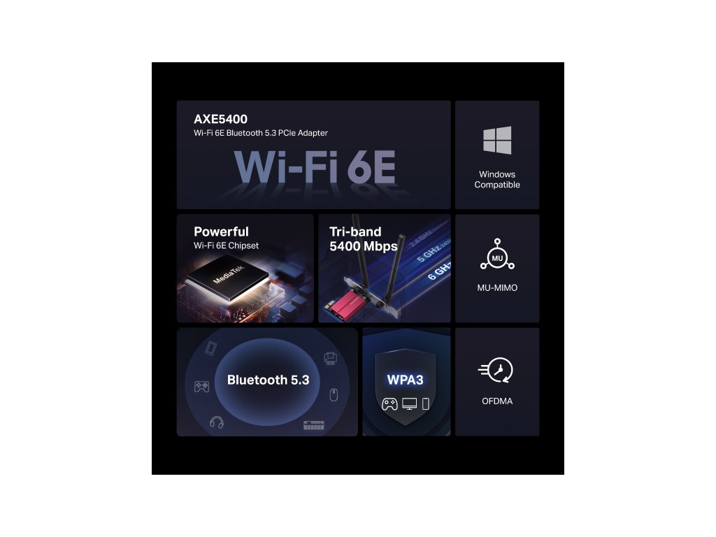 MERCUSYS MA86XE, PCIe karta AXE5400 Wi-Fi 6E Blue