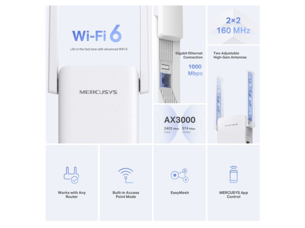 MERCUSYS ME80X AX3000 Wi-Fi 6 Range Extender