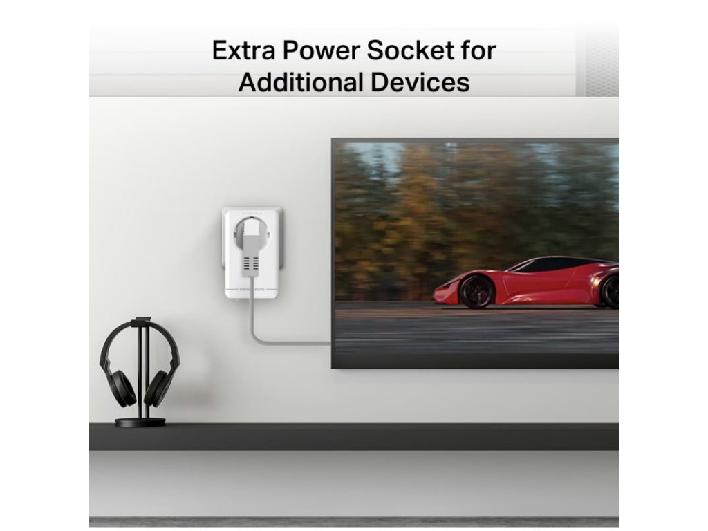 Integrovaná elektrická zásuvka: Vďaka priechodnej zásuvke neprídete o možnosť pripojiť ďalšie zariadenia. Jednoducho zapojte powerline adaptér a do neho potom akýkoľvek iný spotrebič.