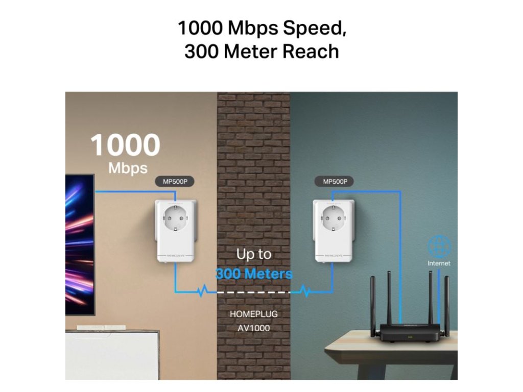 Rozšírte svoju domácu sieť jednoducho a spoľahlivo pomocou existujúcich elektrických rozvodov. Štartovacia sada MP500P KIT premení každú elektrickú zásuvku vo vašej domácnosti na stabilný a rýchly prístupový bod k internetu. Je ideálnym riešením na pripojenie zariadení ako sú stolné počítače, smart TV, herné konzoly alebo IPTV set-top boxy, a to aj v miestach, kde je slabý alebo žiadny Wi-Fi signál.