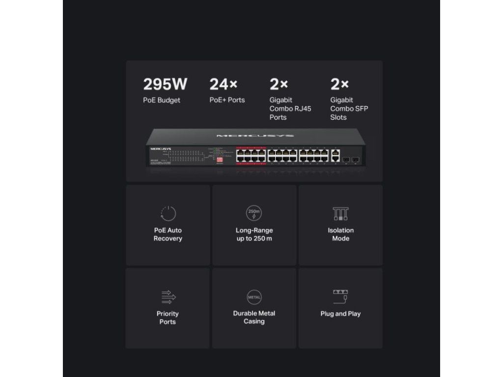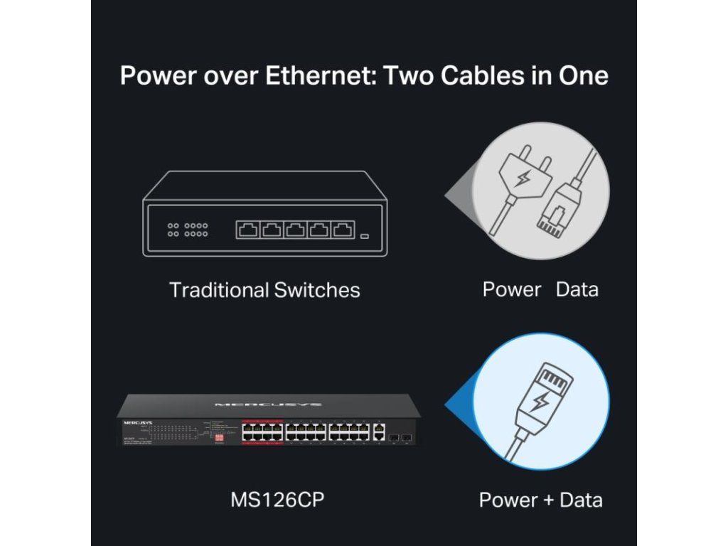 Zvýšte efektivitu a stabilitu vašej firemnej siete s naším 24-portovým switchom MS126CP. Toto zariadenie je navrhnuté tak, aby bez problémov zvládlo napájanie a správu širokej škály zariadení ? od IP kamier a prístupových bodov až po IP telefóny. Vďaka robustnému výkonu, pokročilým funkciám a jednoduchej inštalácii je ideálnou voľbou pre kancelárie, malé podniky a rozsiahle kamerové systémy.
