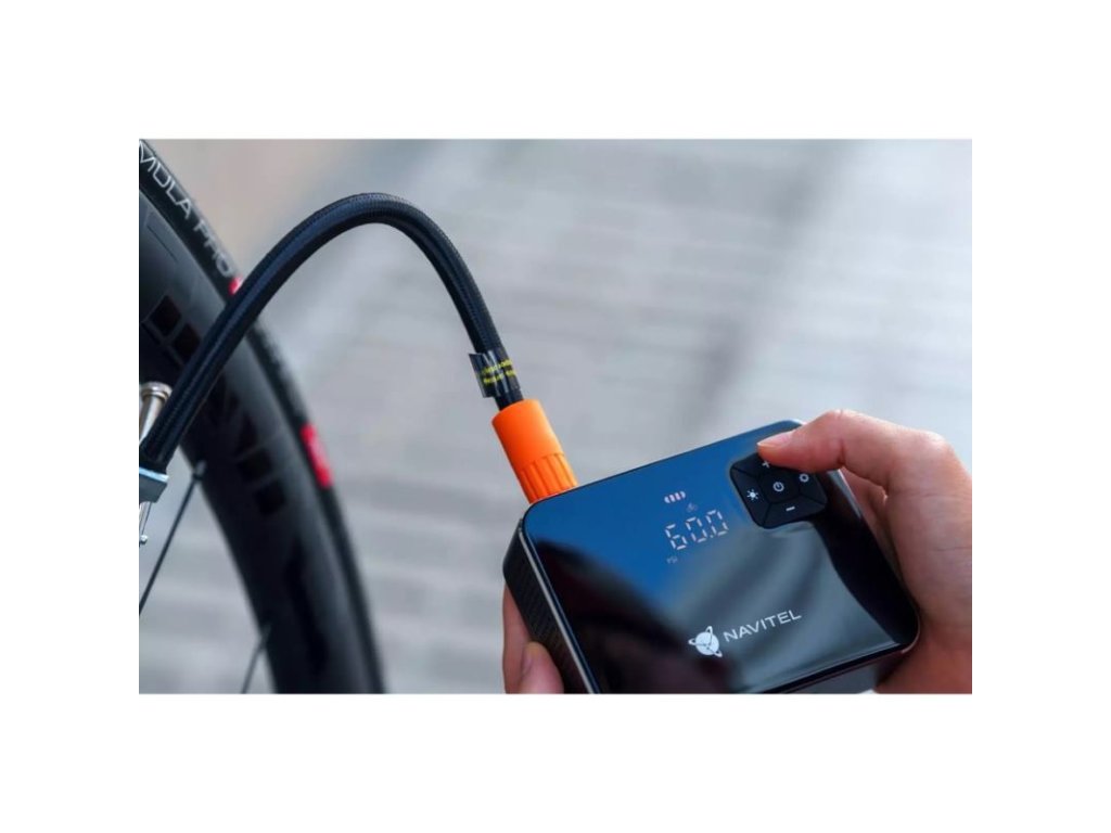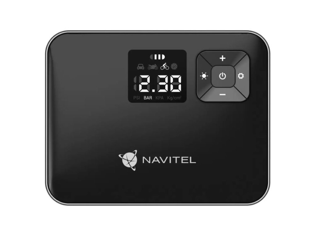 Vďaka prehľadnému digitálnemu displeju je ovládanie prístroja veľmi jednoduché. NAVITEL AIR 15 AL môžete použiť nielen na hustenie pneumatík, ale aj na kontrolu tlaku v nich. Pripojte zariadenie a zapnite prístroj. Počiatočná hodnota na displeji zobrazí aktuálny tlak v pneumatikách.