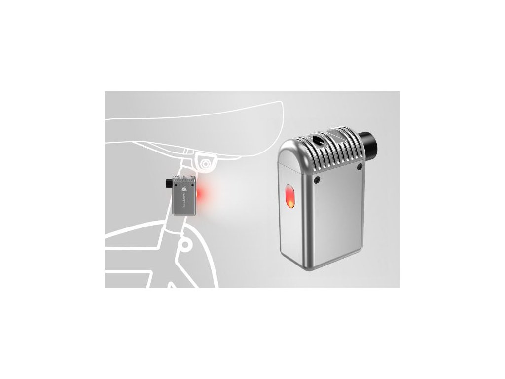 NAVITEL AIR8 MINI je možné použiť aj ako zadné svetlo na bicykel, aby ste boli viditeľní v noci. Jediné, čo musíte urobiť, je zapnúť zariadenie. Tlačidlo na zapnutie a vypnutie sa následne rozsvieti na červeno a potom môžete kompresor pripevniť na rám pomocou suchého zipsu. Silikónové púzdro, ktoré je súčasťou balenia, pomôže vaše zariadenie ochrániť pred vodou a nečistotami z cesty.