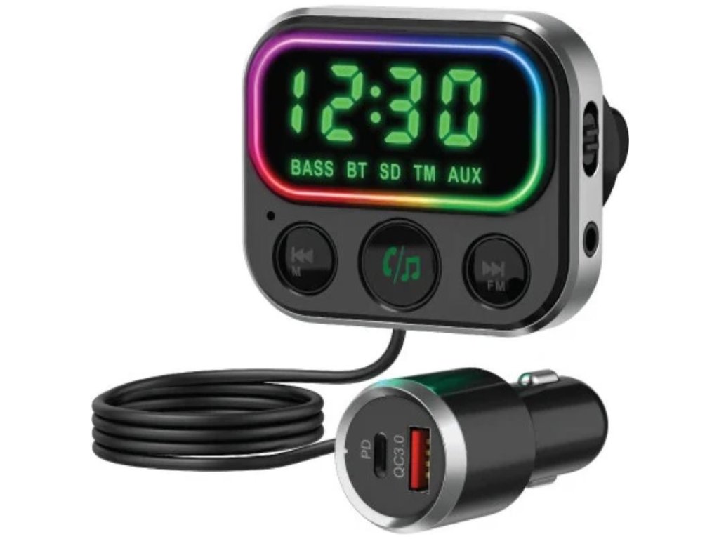 Tento FM transmitter pozostáva z dvoch častí. Nabíjačku pripojíte do klasickej zásuvky autozapaľovača, zatiaľ čo funkčný displej sa dá prichytiť do ventilačnej mriežky alebo na palubnú dosku vášho vozidla (pomocou prídavného držiaka). Dľžka prepojovacieho kábla je cca 110 cm.