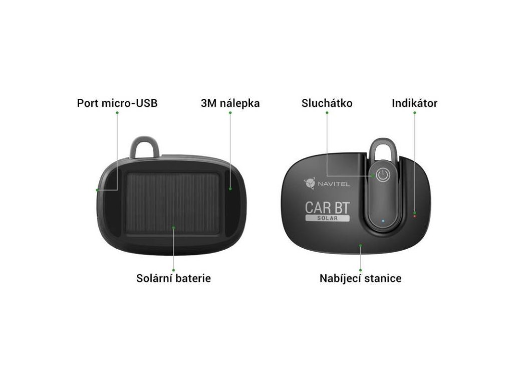 NAVITEL SOLAR CAR BT je multifunkčný Bluetooth headset s možnosťou dobíjania zo slnečnej energie.
