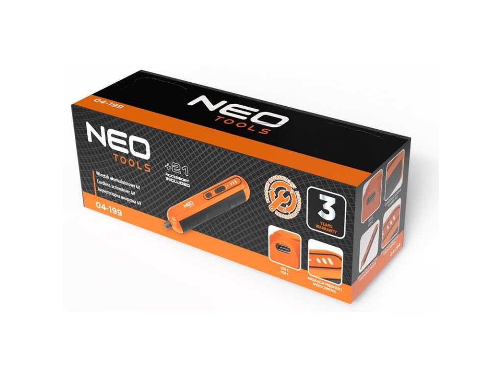 NEO TOOLS 04-199, AKU Skrutkovač USB-C