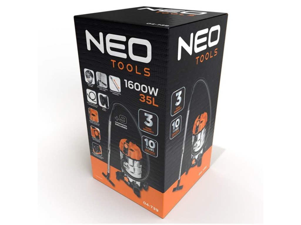 NEO TOOLS 04-739, Priemyselný vysávač, 1600W, 35L
