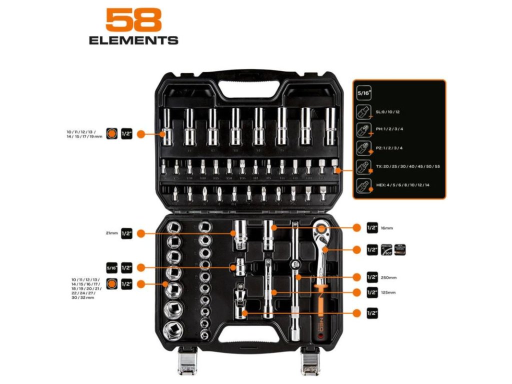 NEO TOOLS 10-042, Gola sada 58 ks