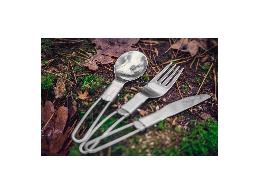Skladací dizajn: Príbor sa dá jednoducho zložiť, vďaka čomu zaberá minimum miesta v batohu.