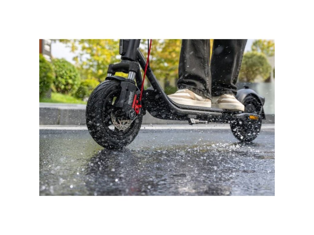 Kolobežky eKickScooters radu F2, vybavené prednou kotúčovou brzdou a elektronickou zadnou brzdou, zaisťujú jazdcovi rýchlejšie a stabilnejšie brzdenie.